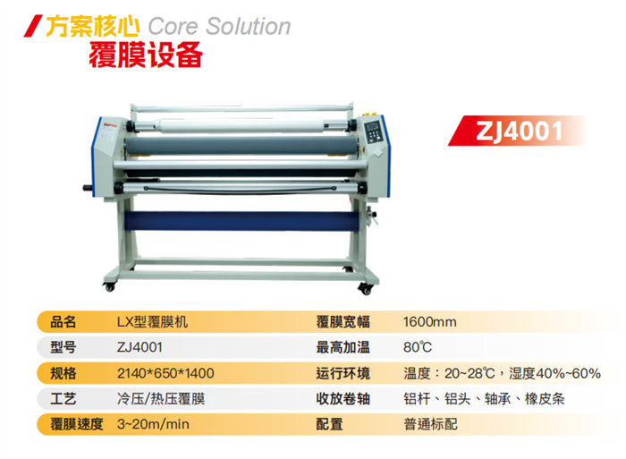 Laminadora ZJ4001 tipo LX (1600 mm): Un modelo estándar robusto que alcanza velocidades de laminación de 3 a 20 m/min.